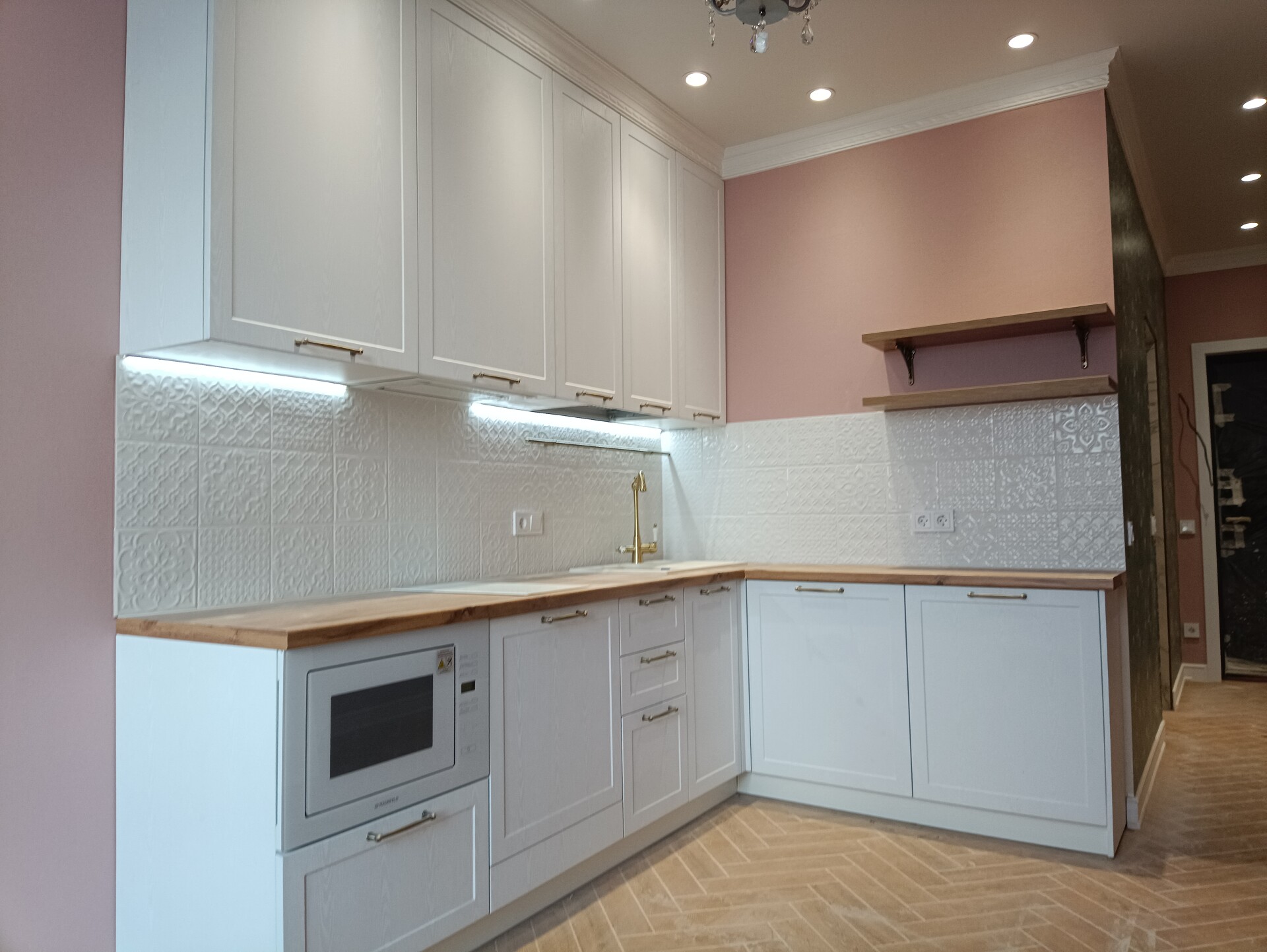 🔻 Фурнитура: профиль Гола белый, фурнитура с доводчиками Pulse, сушка, цоколь, подсветка, плинтус.