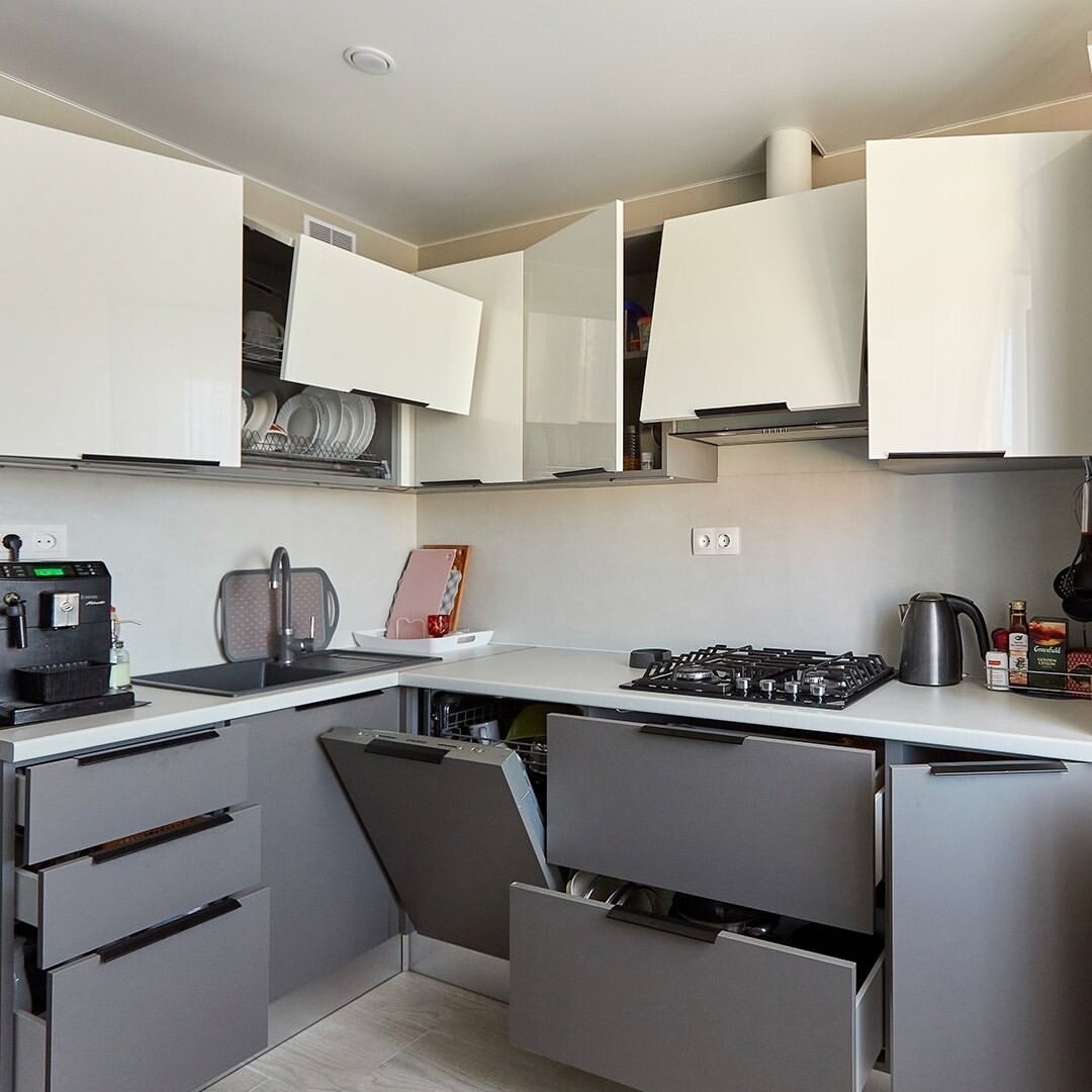 🔻 Фурнитура: профиль Гола черный, фурнитура с доводчиками Блюм, сушка, цоколь, подсветка, плинтус.