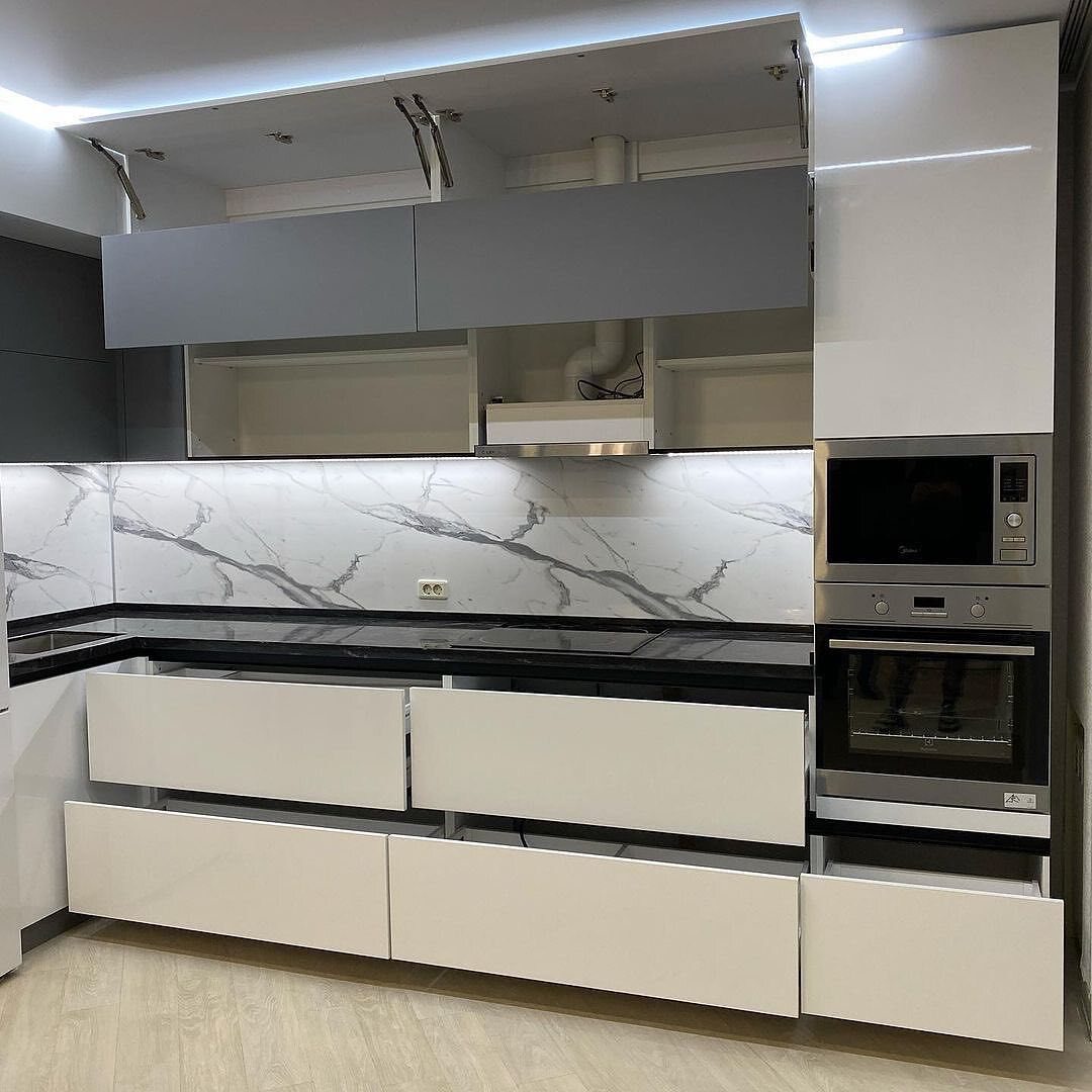 🔻 Фурнитура: профиль Гола черный, фурнитура с доводчиками Блюм, сушка, цоколь, подсветка, плинтус.